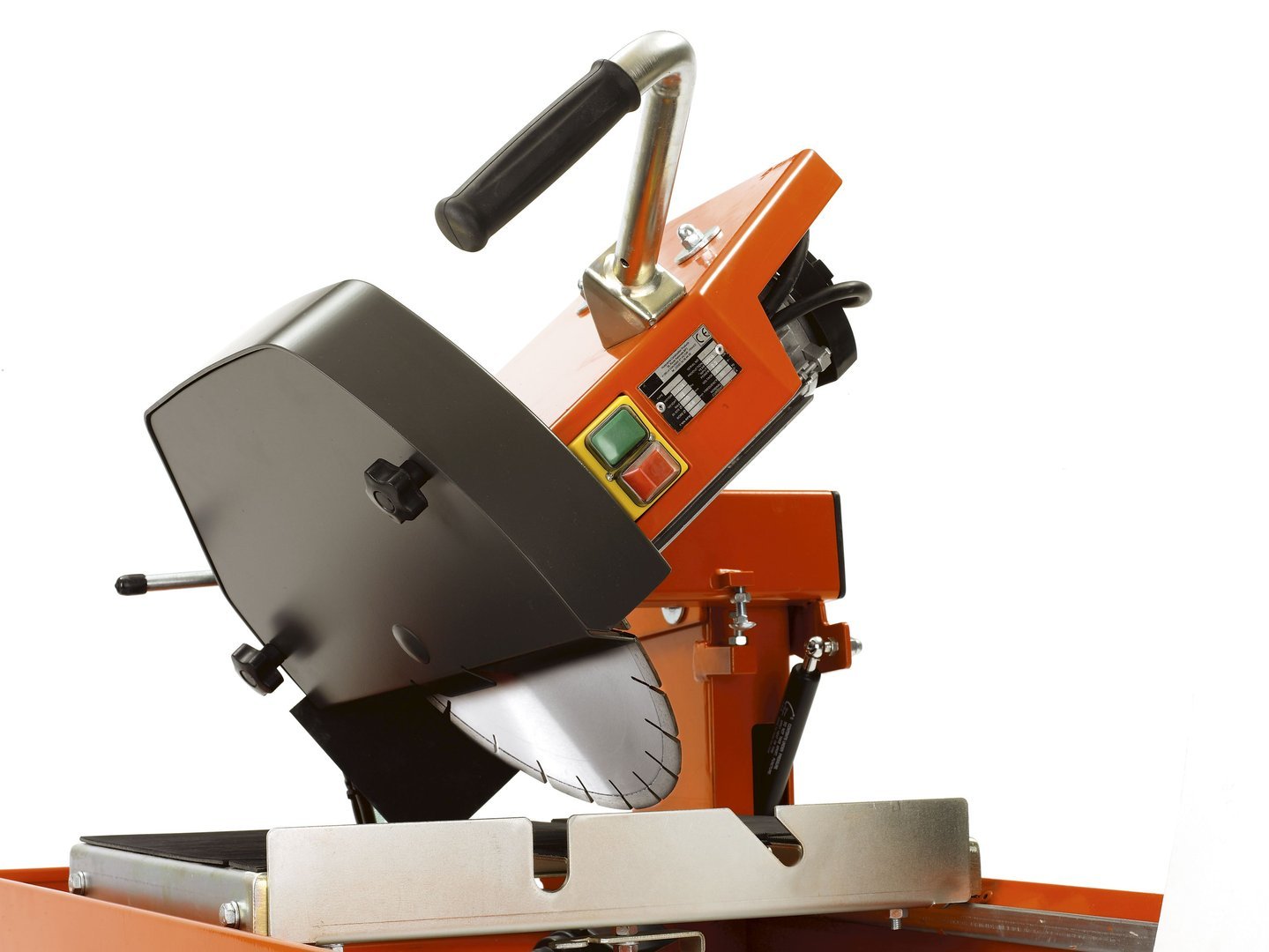 Die TS 350 E ist eine effiziente Steintrennsäge mit hoher Schnittleistung für verschiedene Baustoffe. Diese Tischsäge bietet eine maximale Schnitttiefe von 100 mm einfach oder bis zu 200 mm im Umkehrschnitt. Kapp- oder Gehrungsschnitte bis 45° sind problemlos möglich und gewährleisten eine optimale Anwendbarkeit. Der robuste Einzelrahmen bietet hohe Stabilität und eine lange Lebensdauer. Die Maschine kann aufgrund der klappbaren Standbeine problemlos von einer Person gehandhabt werden.