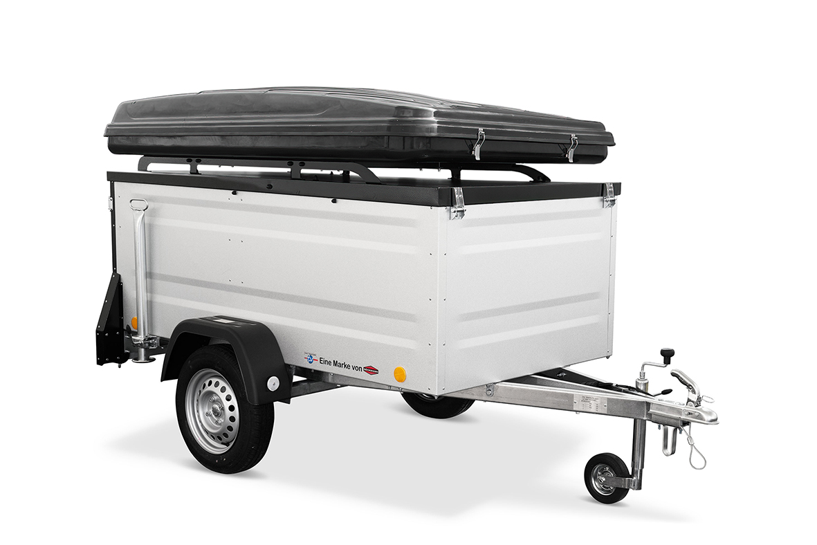 In dem einachsigen ungebremsten Kofferanhänger mit nach oben aufstell- und abschließbarem spritzwassergeschütztem Deckel mit Reling können Sie Ihr komplettes Camping-Equipment sicher verstauen. Der Deckel hat eine verstärkte Dachreling und stärkere Stoßdämpfer – damit wird die Traglast des Deckels auf 250 kg erhöht.