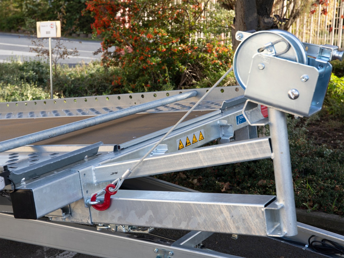 Die feuerverzinkten Laufschienen sorgen für eine langlebige und widerstandsfähige Ladefläche, während das teststreckengeprüfte Fahrgestell mit Sicherheits-V-Deichsel eine optimale Straßenlage gewährleistet.