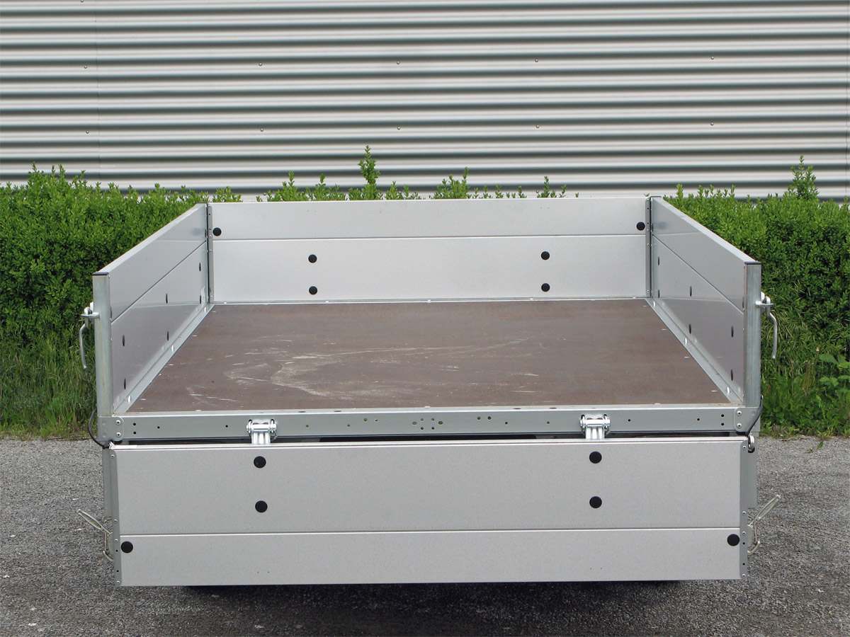 - Ladefläche: durchgängiger, rutschhemmender, wasserfester Siebdruckholzboden (12 mm)